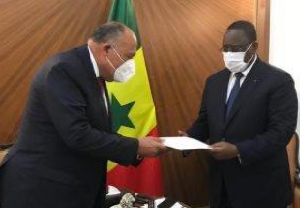 حمل وزير الخارجية المصري، سامح شكري، لرئيس السنغال، مالكي سال، رسالة من الرئيس، عبد الفتاح السيسي، متضمنة مجموعة من الملفات التي سيبحثان فيها خلال الجولة الإفريقية التي يقوم بها حاليًا.